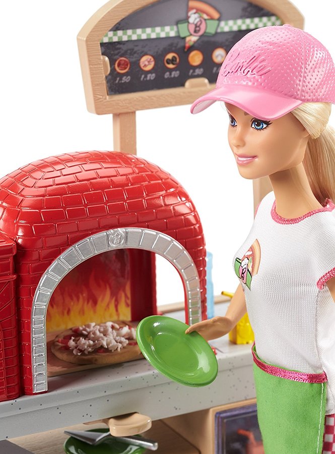 - Cook up fun with a pizza play set that comes with Barbie doll, an oven with creative working features and all the ingredients to make, "bake" and serve pizza, including three different colors of dough!