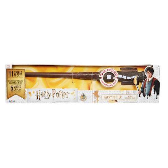 Practice eleven different spells with the Harry Potter Wizard Training Wand! Featuring light and sound effects, this wand recognises your motion to cast spells and gives you instant feedback!
