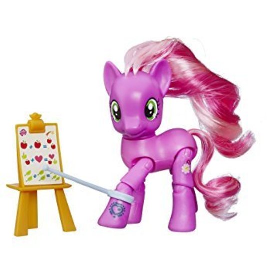 This 3-inch My Little Pony Cheerilee figure is poseable! This pony figure features 8 points of articulation with a movable head and legs. Plus, the Cheerilee pony figure comes with 2 teaching-themed accessories: a lesson board and pointing stick to act out fun schoolroom scenes! To unlock more fun, scan the Cheerilee pony figure's code using the My Little Pony Friendship Celebration app!