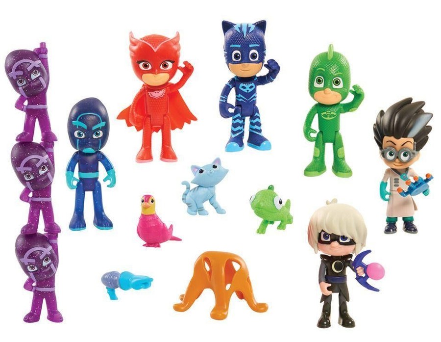 This Deluxe 16 piece figure set features 12 character, including Catboy, Gekko, Owlette, Luna Girl, Romeo, Night Ninja and the stackable Ninjalinos, alongside four accessories. Are you ready to play and display?