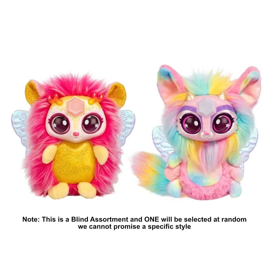 Add the Bubble 'N' Fizz Dust, name your Mixie Plushie with the naming scroll and then pour in water with your included wand! Watch the magic unfold as your Cauldron bubbles and fizzes before a magical reveal! Press down the crystal gem on your Magic Mixies Plushie's forehead and tilt forwards and backwards to see the shimmer effect in the eyes!