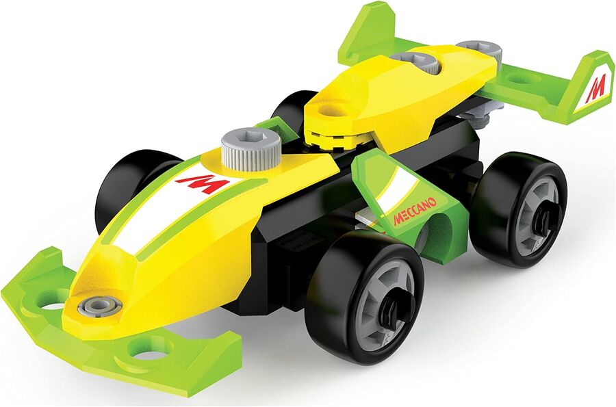 - The Meccano Junior Race Car is a STEAM building kit for kids aged 5 and up. No batteries required. With Meccano, building is just the beginning