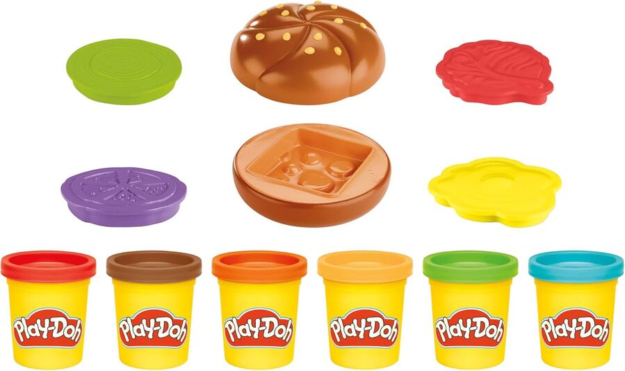 - 6 PLAY KITCHEN ACCESSORIES: 2 toy burger buns and 4 stampers let kids make a complete Play-Doh hamburger again and again