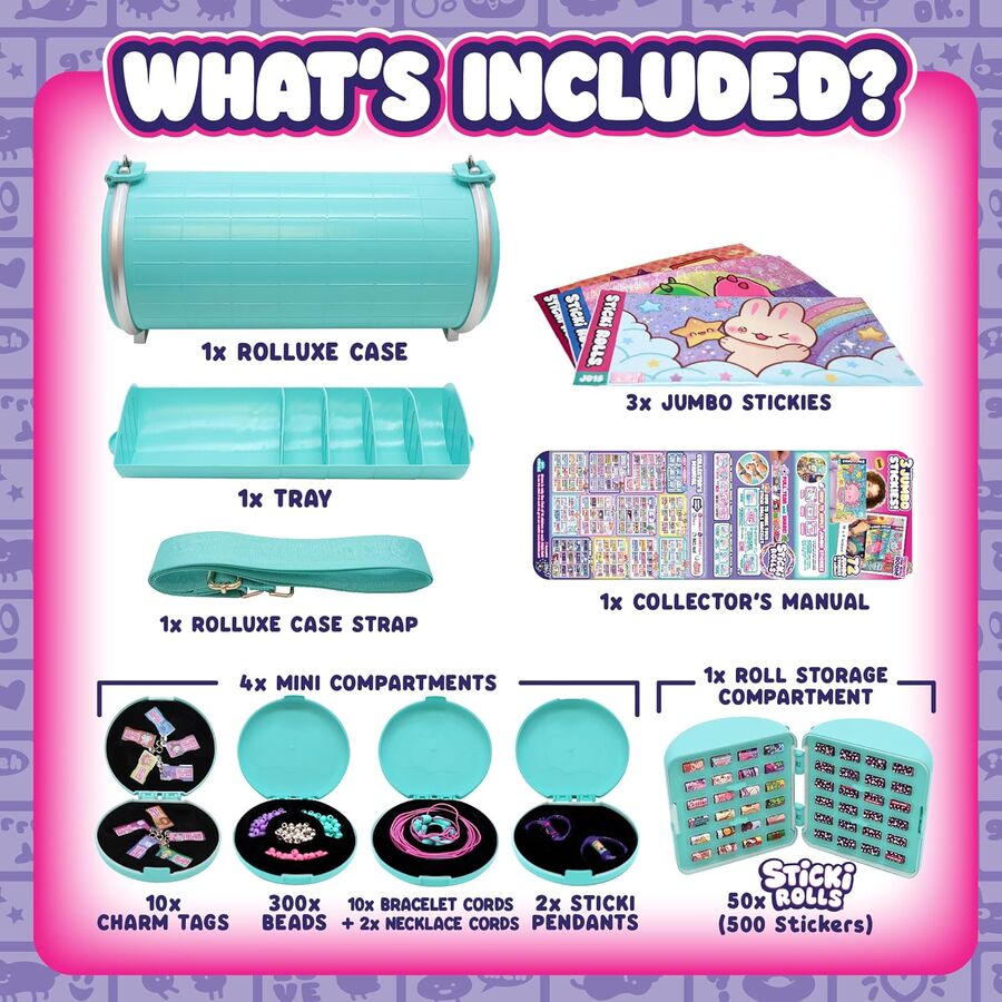 With a chic strap, fun compartments, and major Sticki vibes, it’s the perfect accessory for every Sticki Rolls superfan who wants to keep their creativity close and their collection even closer.
