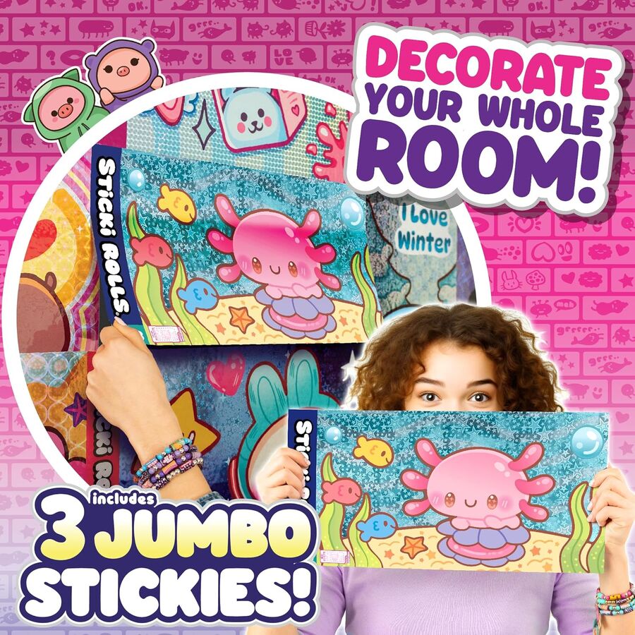 - GIANT JUMBO STICKIES INCLUDED: Unbox 3 mystery 9×18″ holographic stickers—perfect for room décor and wow-worthy reveals!