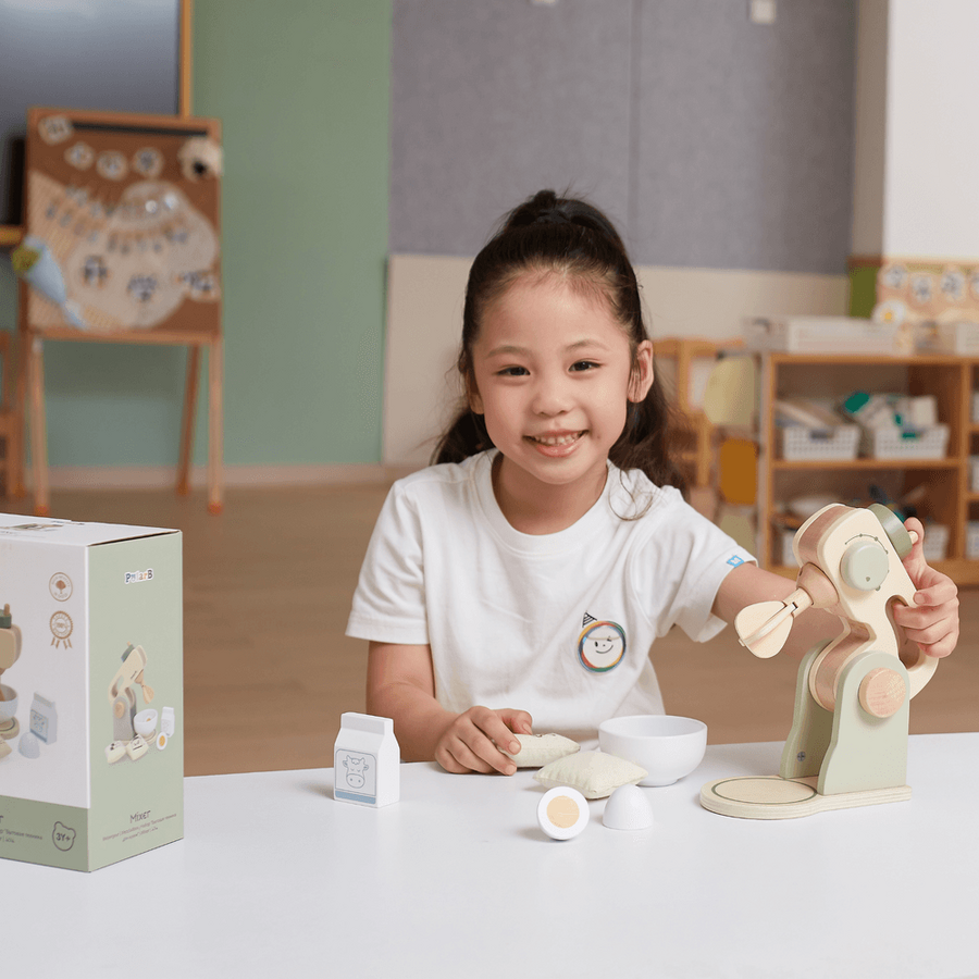 A must-have kitchen appliance for budding bakers! This adorable set is a mechanical toy that kids will love to put into action for hours and hours!