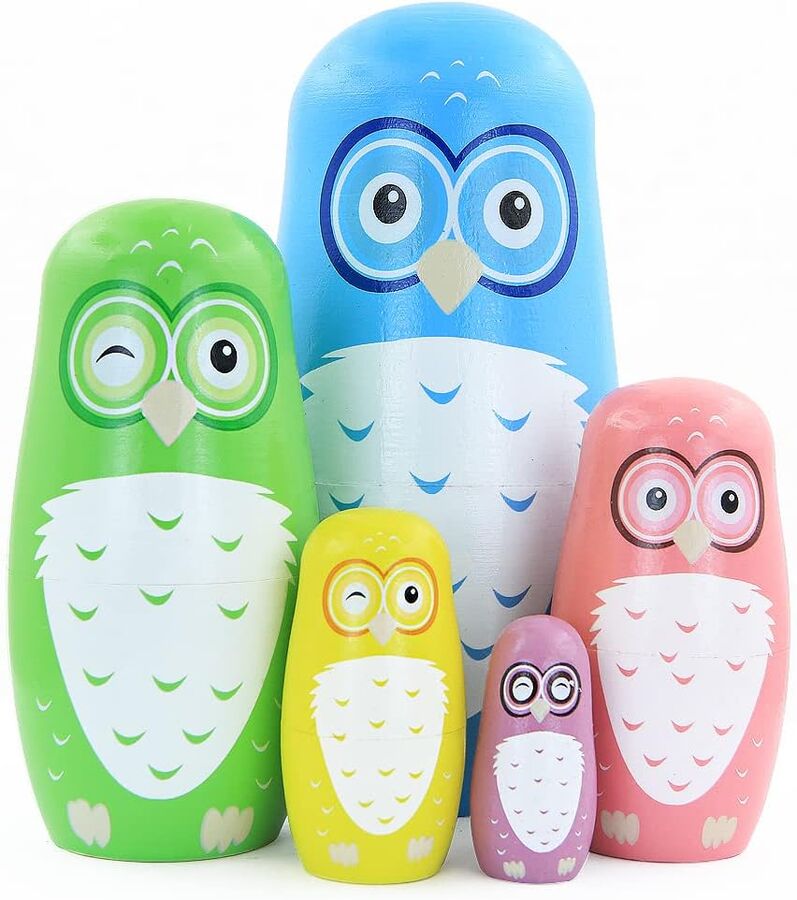 Just like traditional Russian Matryoshka dolls, this set of 5 dolls nest inside each other.