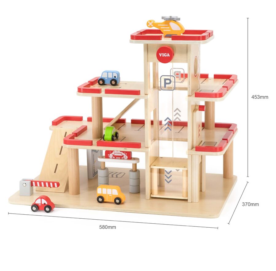 Experience the best adventures with your favorites cars in this all-inclusive garage toy from VIGA.
