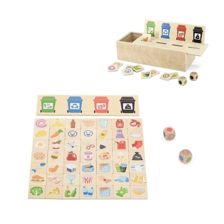 - Includes sorting box, 50 garbage tiles to sort into the correct bins, 2 dice and instructions