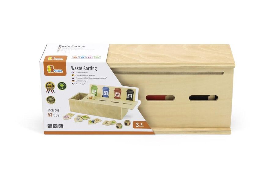 Viga Wooden Waste Sorting Game is an interactive wooden activity that teaches children about waste management and environmental responsibility. It includes different bins for sorting various types of waste, making learning about recycling both fun and educational.