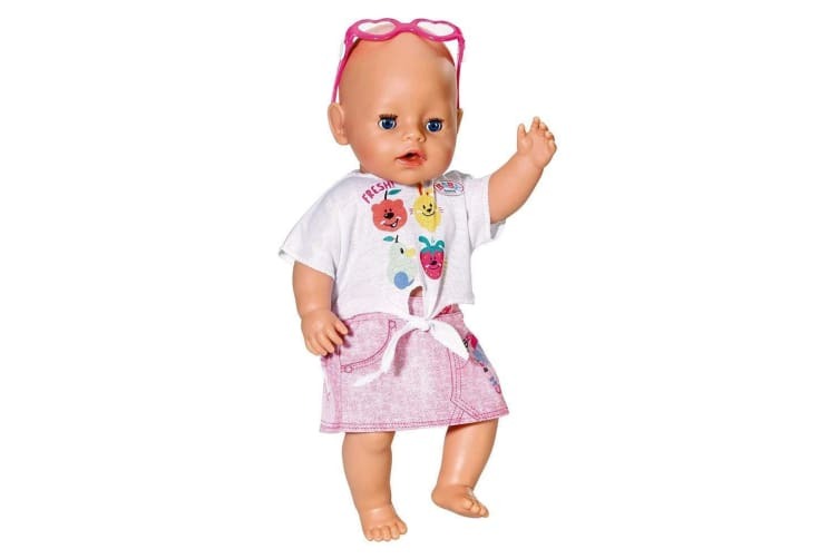 - The Baby Born Deluxe Fashion Set Spring outfit set is made for dolls that measure 43cm and includes:
