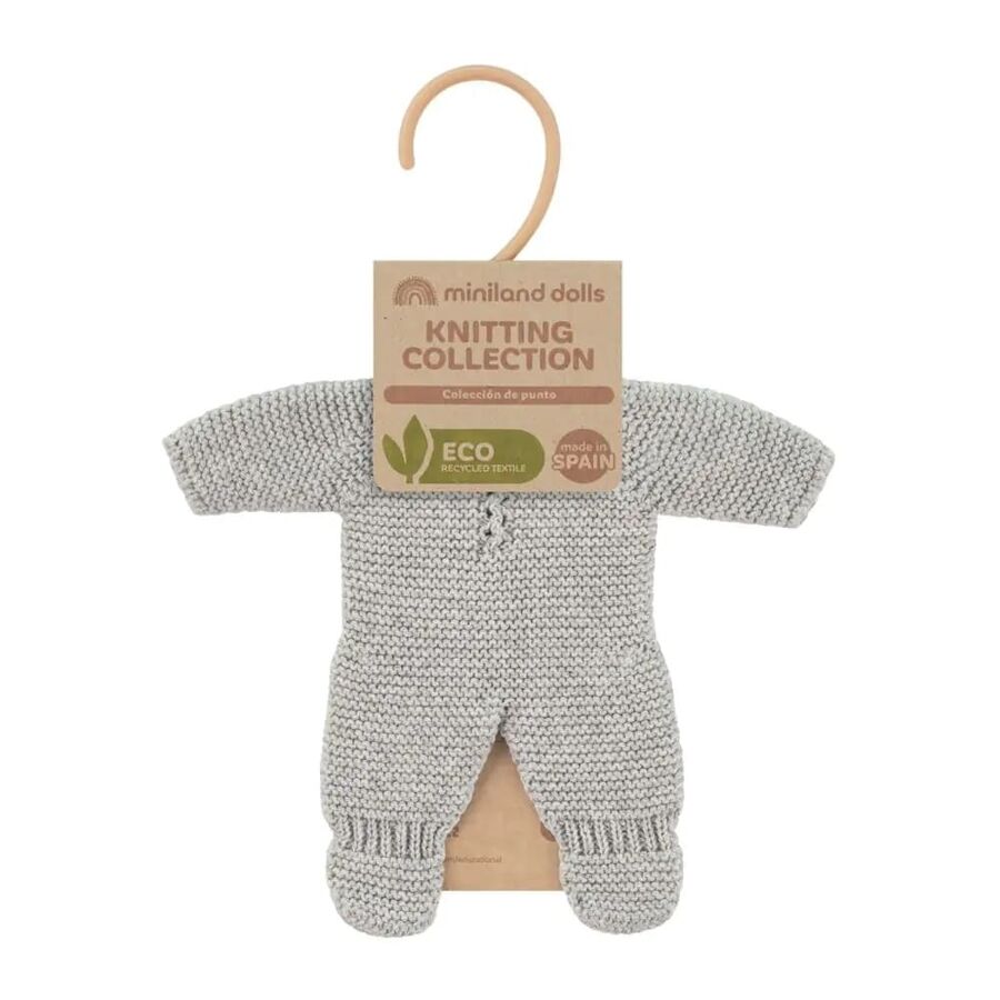 Knitted Doll Outfit by Miniland. A sweet knitted pajamas outfit for your Miniland doll. Fits all 21cm dolls and comes with a clothes hanger.