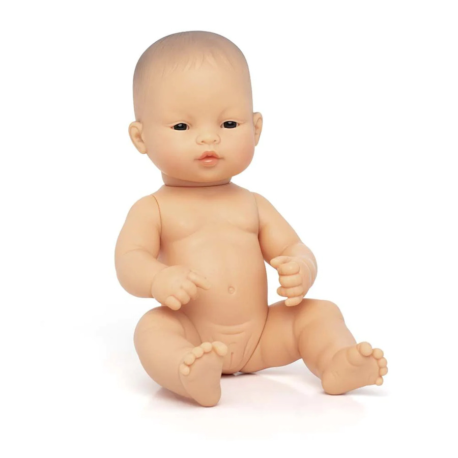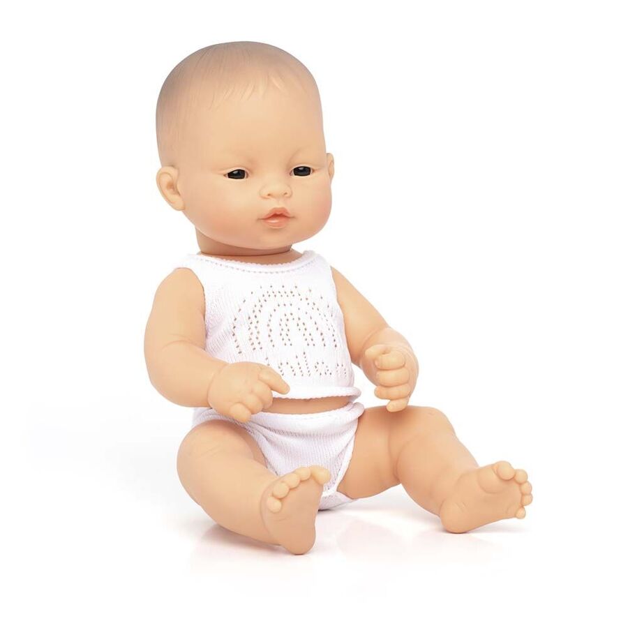 This Asian Girl 32cm by Miniland is designed and manufactured Spain and is anatomically correct and is vanilla scented to smell like a newly born baby. Miniland Dolls are manufactured from Eco-Friendly and non toxic Phytalates-free vinyl which also makes her soft and flexible to touch. The dolls also help children understand the concept of family, population groups and cultural diversity.