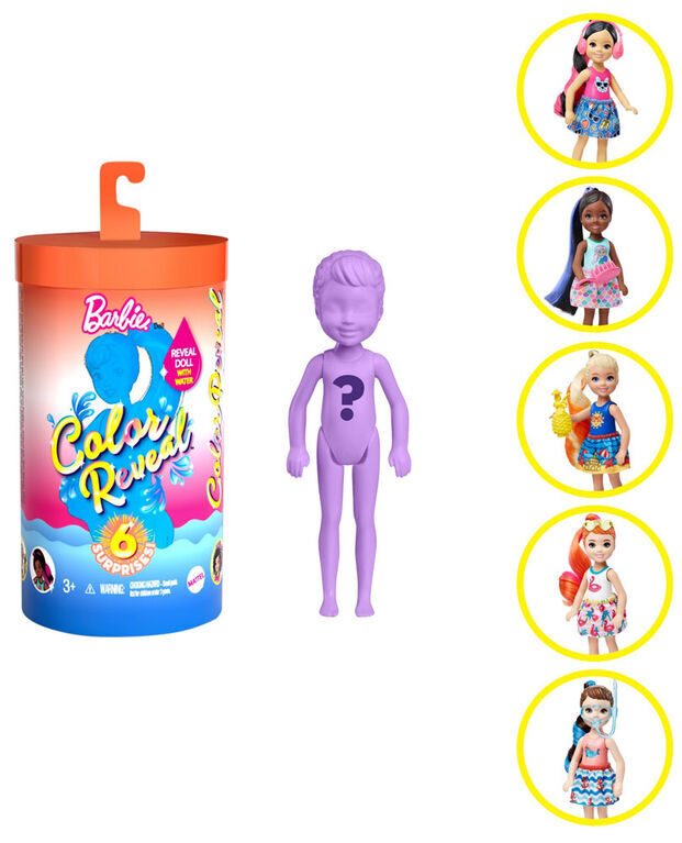 - With 6 surprises in 1 package, the Barbie Color Reveal Chelsea dolls deliver all kinds of delight!