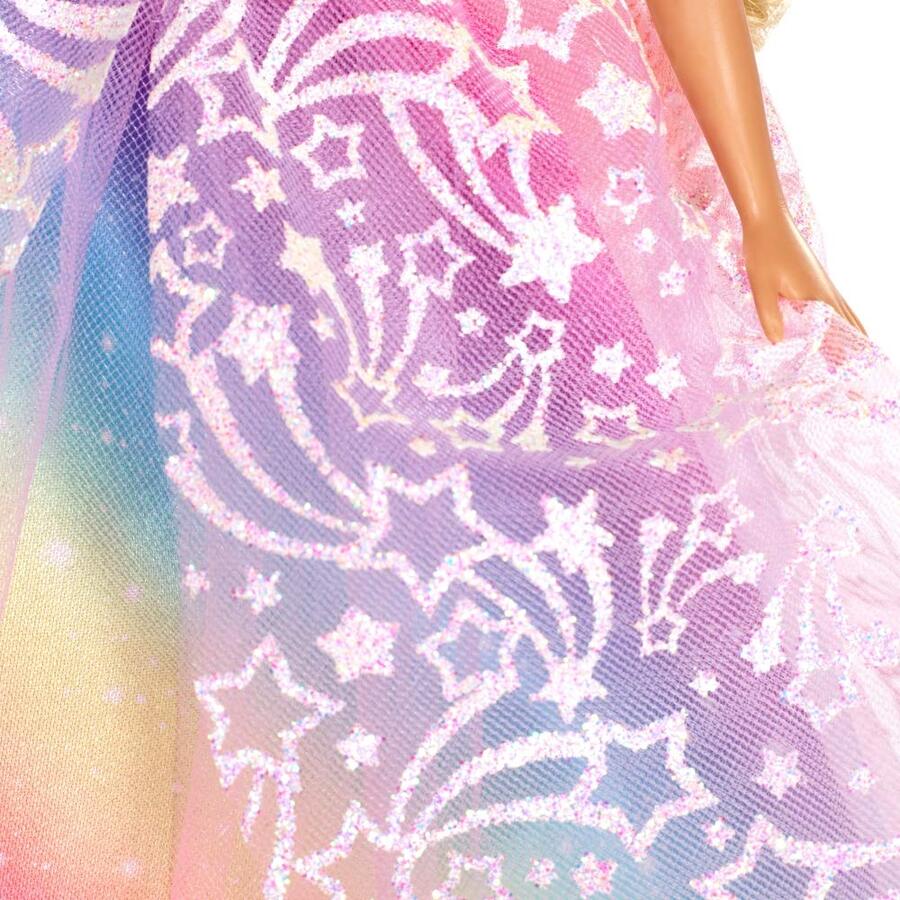 - Barbie princess doll adds even more color and fantasy to her look with pink hairstreaks inspired by the rainbow