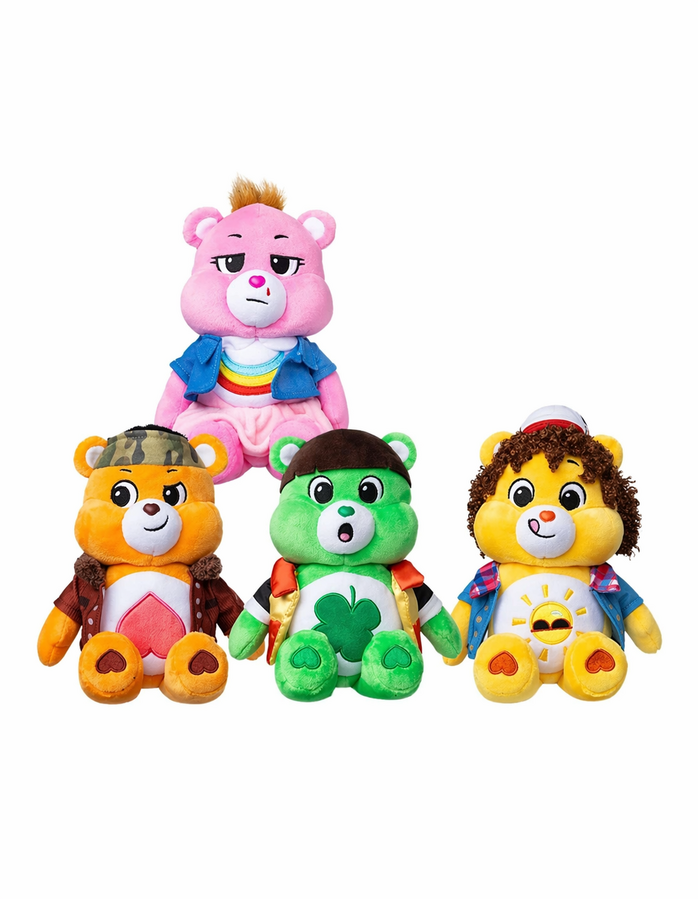 Step into the world of Stranger Things, where supernatural mystery meets retro 80s charm, now combined with the warm, nostalgic magic of the Care Bears. This unique plush range brings together the best of both universes, blending Care-a-Lot sweetness with an Upside Down edge.