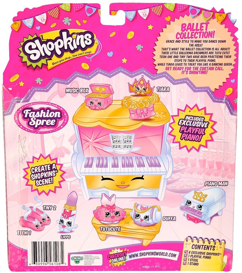 It's time for a Fashion Spree! Shopkins fans can step in and see what's in store. Designer shoes for girls to choose. New seasons styles to make them smile! There's so much more to adore when they're on a Shopkins Fashion Spree. Comes in an assortment of 3 themes: Ballet, Best Dressed and Cool & Casual.
