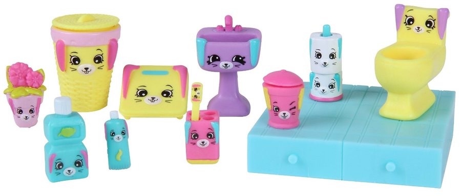- The Bunny Bathroom comes with 3 Medium Petkins, 8 Small Petkins, 4 Mini Petkins, 2 tiles and 1 catalog