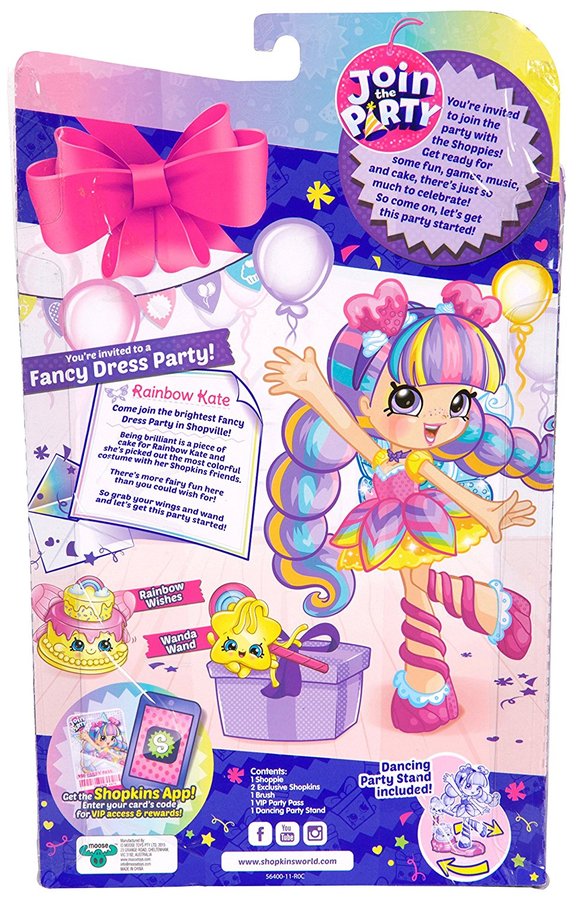 - Rainbow Kate comes with 2 exclusive Shopkins, Rainbow Wishes and Wanda Wand