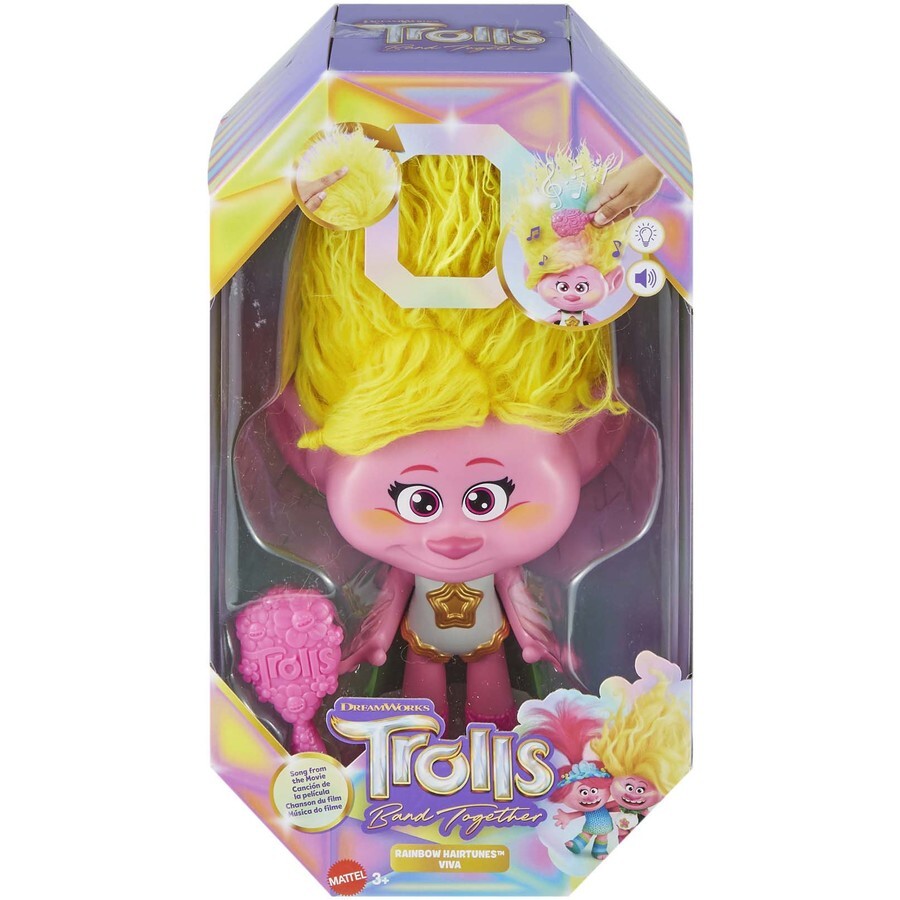 - Viva doll features extra-long yellow hair that lights up and plays music and sounds from the movie DreamWorks Trolls Band Together!