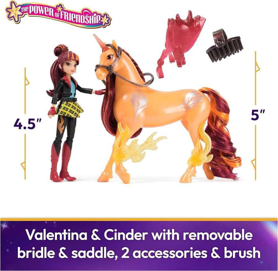 - Valentina 4.5” doll: Live out the magical bond between rider and unicorn with Valentina & Cinder. Authentic character details & 7 points of articulation bring Valentina to life. Pose her to ride Cinder.