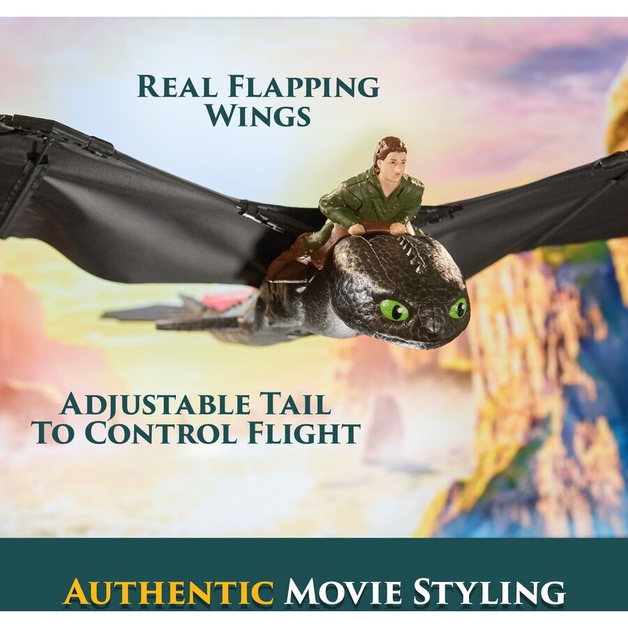 - Real Flapping Wings: Featuring authentic movie styling, watch as Toothless soars in the air and control his speed with the throttle remote control from up to 250 feet away