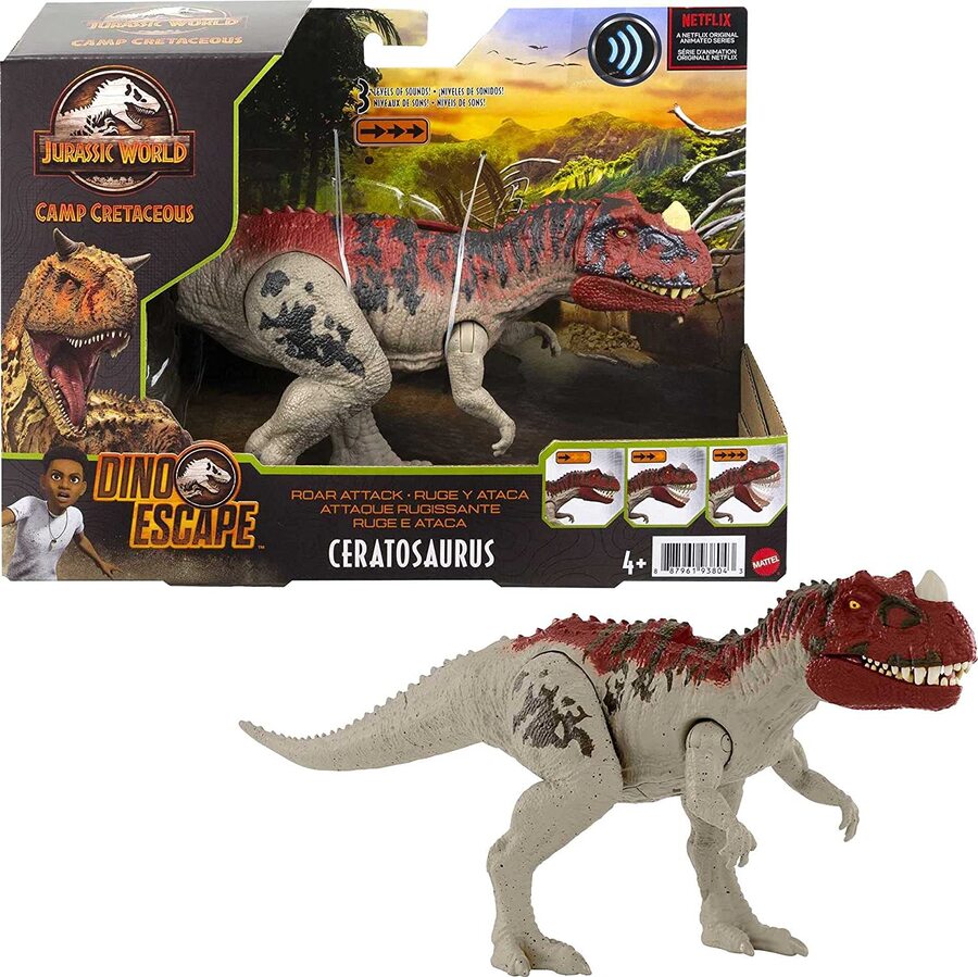 Get ready for more thrills and adventure with Jurassic World Dino Escape! These medium-sized Roar Attack dinosaur action figures are inspired by the animated series, Jurassic World: Camp Cretaceous and are battle ready! Activate the strike feature and hear three levels of aggressive sounds that build up to a mighty roar. Each strike action is iconic to its respective species. Figures also feature authentic sculpting, movable joints, authentic color and realistic texture. For ages 4 years old and up. Colors and decorations may vary.