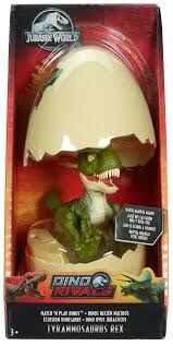 - Get ready for thrilling action and adventure with Jurassic World! These Jurassic World Hatch 'n Play Dinos capture the magical moment when a baby dinosaur egg hatches and you see the baby dinosaur for the very first time! Each colorful hatchling egg has an eye on the outer shell unique to its respective species. Push the top and a few moments later, the egg hatches and the top pops off to reveal the baby dinosaur! Each baby dinosaur has a special feature unique to its species like the Tyrannosaurus Rex's teeth that grow; Baby Blue has a chomping feature; the Triceratops has a super stomp; and Stiggy has growing horns. Kids can have fun with hatching action again and again and the eggs are also great for storing the baby dinosaurs.