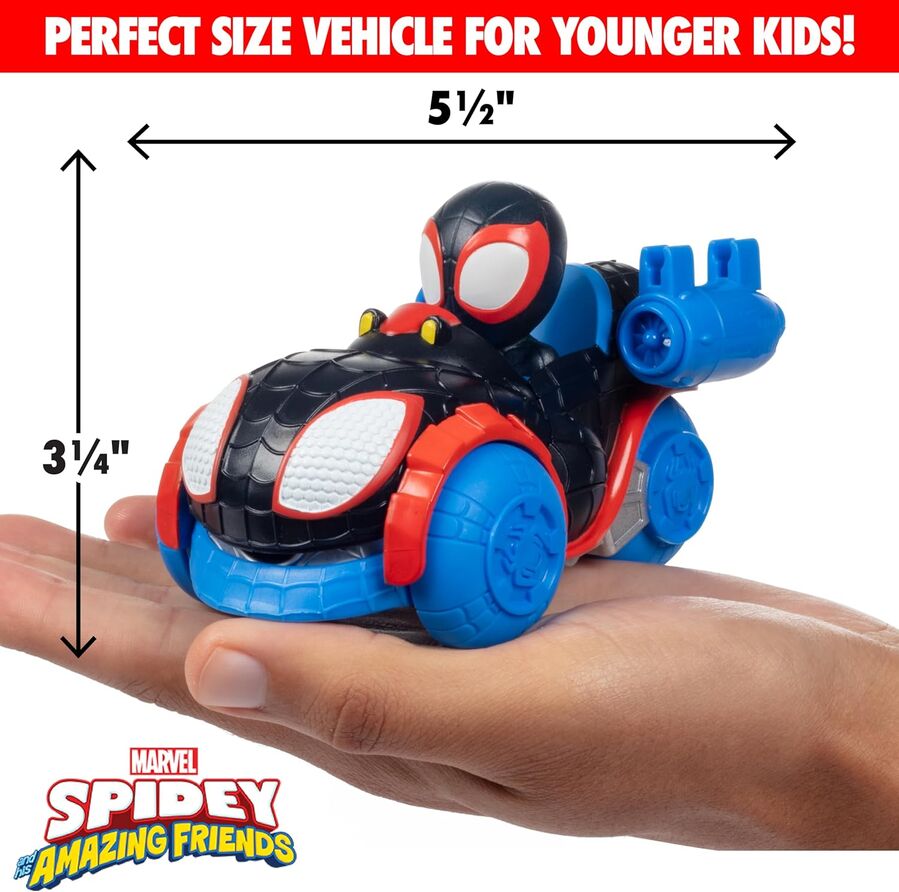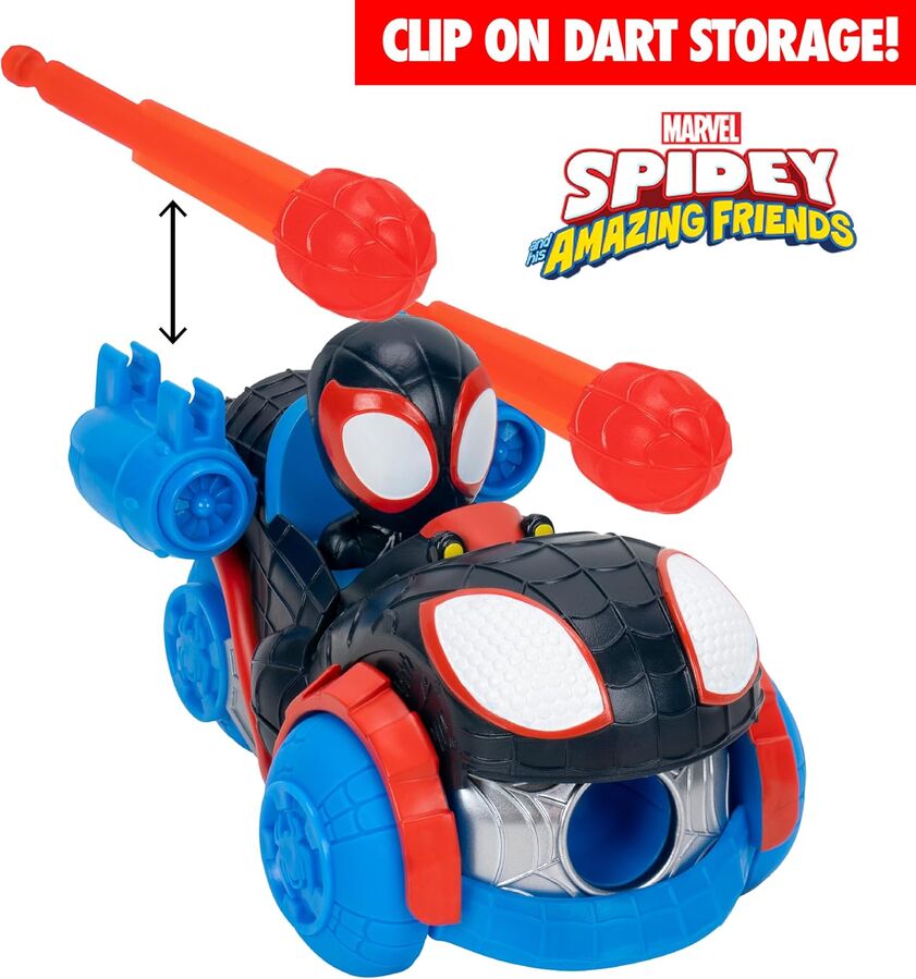 Web dart zoomer: Launch a new adventure with the Marvel Spidey Web Dart Zoomer Amazing Spidey: 5-inch vehicle features the amazing Spidey, Ghost Spider or Spin at the steering wheel Dart launcher: Press down your Web Dart Zoomers head to launch Web Darts from the Web Dart Launcher Dart storage: Includes two Web Darts that you can store on the spoiler wings Show inspired: Inspired by the hit show Spidey and His Amazing Friends Official product: Officially licensed Marvel product from Jazwares