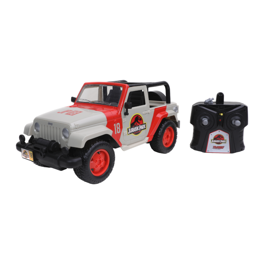 Outrun the mighty dinosaurs that roam the park! Get ready for an adventure beyond imagination with this off-road inspired 1:16 scale Jeep Wrangler RC Radio Control vehicle featuring styling cues directly from the movie Jurassic World! Experience the ride of your life as you navigate yourself to safety with a full function remote control! Ages: 6 +