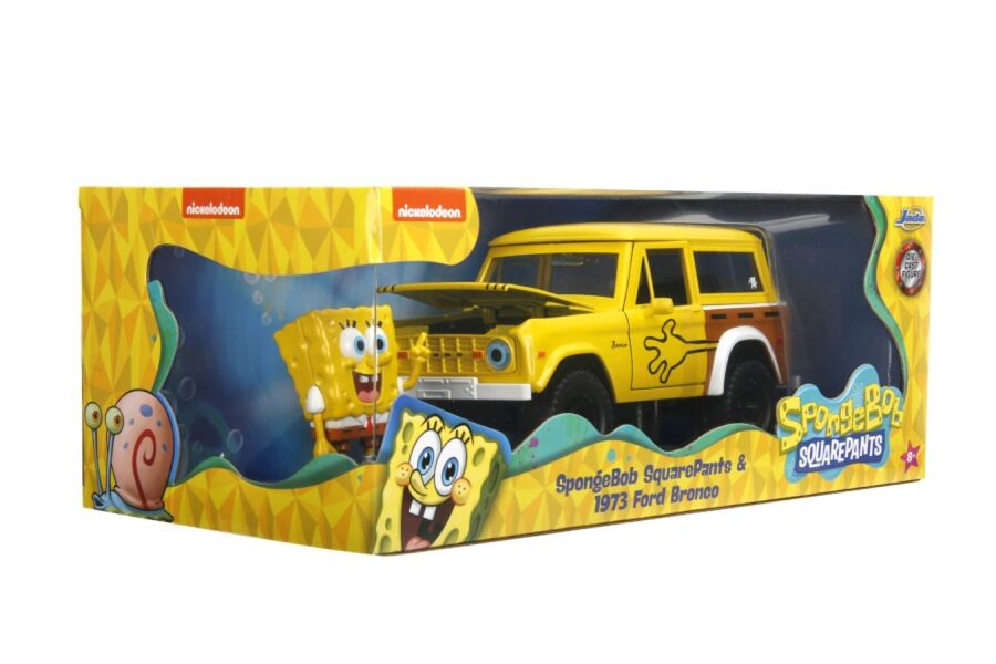 - Jada Toys presents the all new Spongebob Squarepants - 1973 Ford Bronco (with Spongebob) 1:24 Scale Diecast Vehicle.