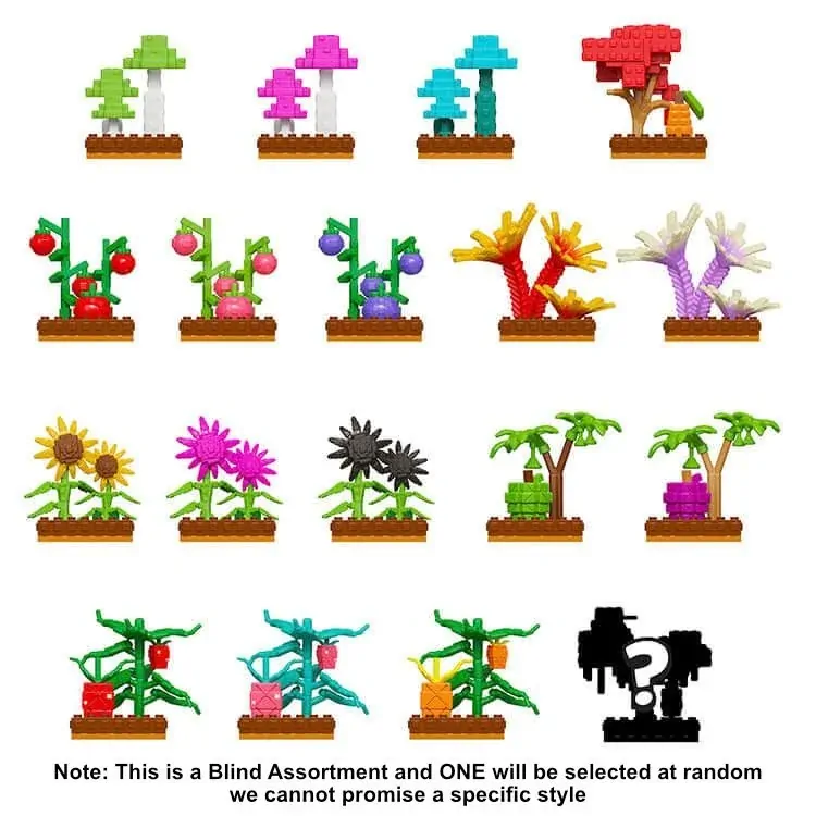 Pour out the contents to uncover your hidden crop, then build it piece by piece as your garden comes to life. Once assembled, display your completed plants and start your collection. With a wide variety of colorful designs—including rare crops—every pack offers a new surprise and a reason to collect more.