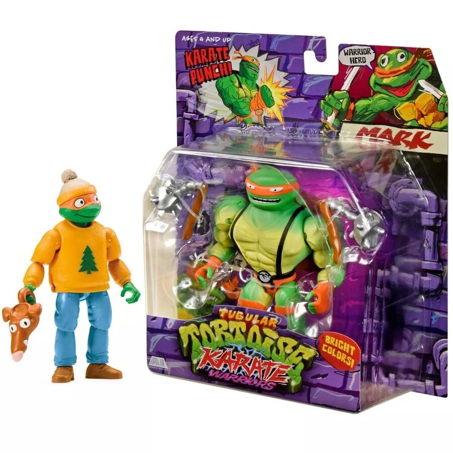Mark is a hilariously exaggerated bootleg of Mikey with oversized muscles and retro ‘Karate Warriors’ styling