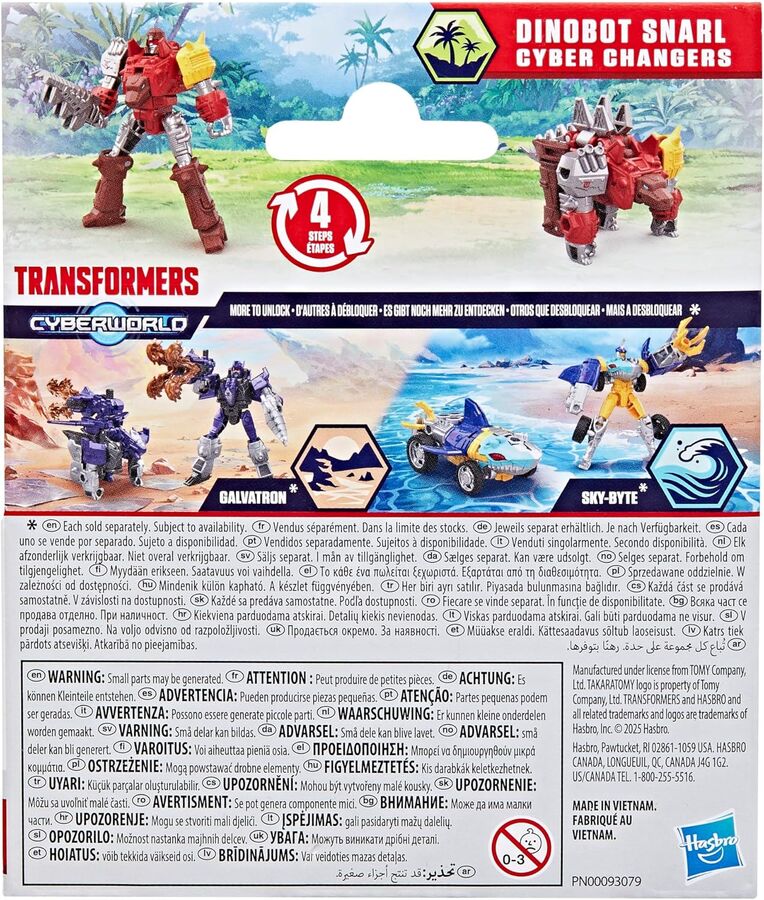 In Transformers CYBERWORLD, kids decide what happens — and it starts with awesome toys like the Dinobot Snarl Cyber Changers figure. This 4-inch (10 cm) Dinobot Snarl toy changes from robot to dino mode in just 4 steps that are simple enough for kids ages 6 and up. Give kids’ storytelling power a boost with additional CYBERWORLD toys (each sold separately, subject to availability), and discover unique characters, alt modes, environments, and more. Fans of Transformers collectibles and newcomers alike will love discovering this take on the Transformers universe, where the only constant is change.