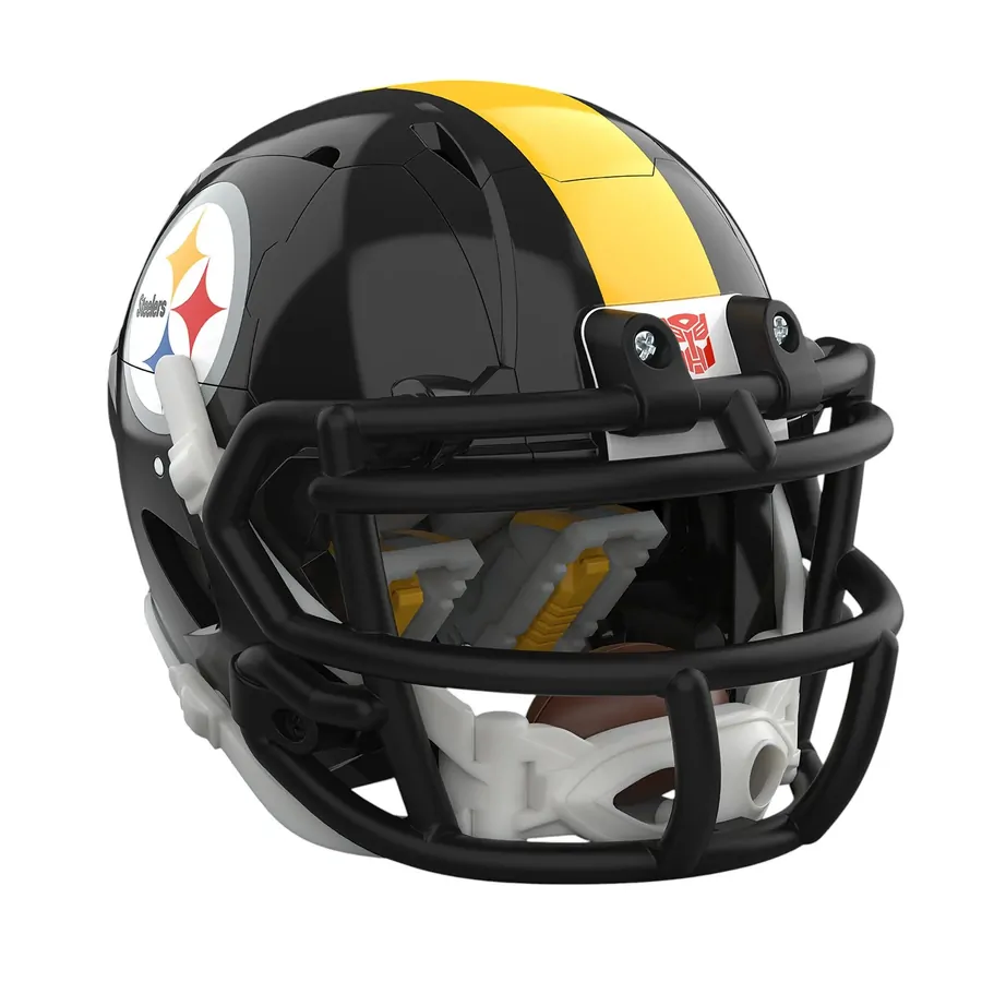 Experience the epic combo of Transformers robots and the NFL with the Transformers Pittsburgh Steelers Steelsmash toy! The 5.5-inch (14 cm) figure converts from robot action figure to football helmet mode in 23 steps. With intricate poseability and accessories like a mini football the figure can hold and a mini helmet that the robot figure can wear, this unique collaborative action figure makes an awesome addition to any Transformers or NFL collection. Look for more Transformers collectible toys (sold separately, subject to availability) featuring favorite characters like Optimus Prime, Bumblebee, Megatron, and more to create a lineup that is - More Than Meets the Eye.