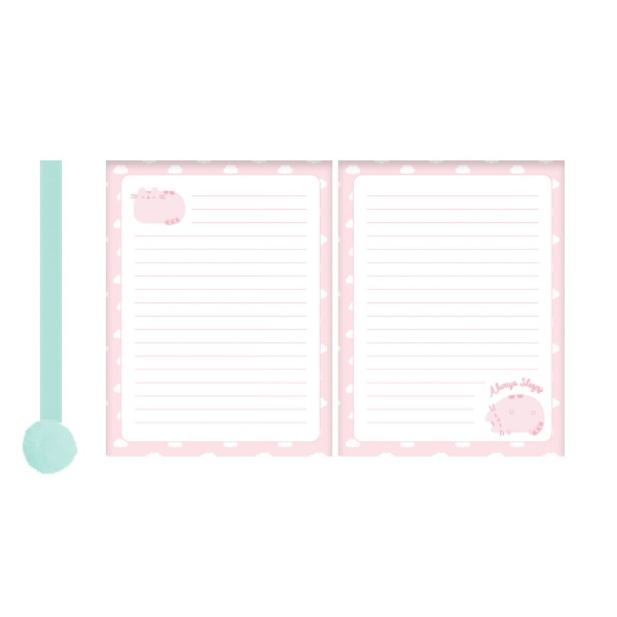 An adorable pink plush notebook to store away your thoughts and ideas. Features an embroidered Pusheen 'Nap Time' PU patch and a pom pom bookmark.