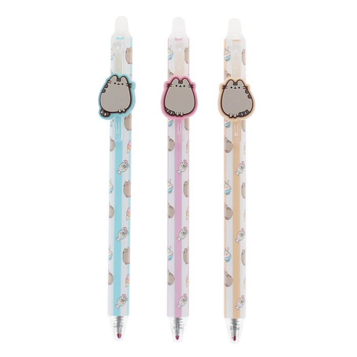 - Write and rewrite with ease using these erasable gel pens! Each pen features a unique tropical Pusheen design with soft-touch pastel barrels and built-in erasers. Great for school, journaling, or gifting with a fun summer twist.