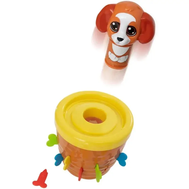 Have hours of fun with this fun action game! Each player takes turns in sliding the dog bone in to the base, the puppy could pop at any time! Who will send the puppy flying first? The first player to make the puppy pop is out of the game!