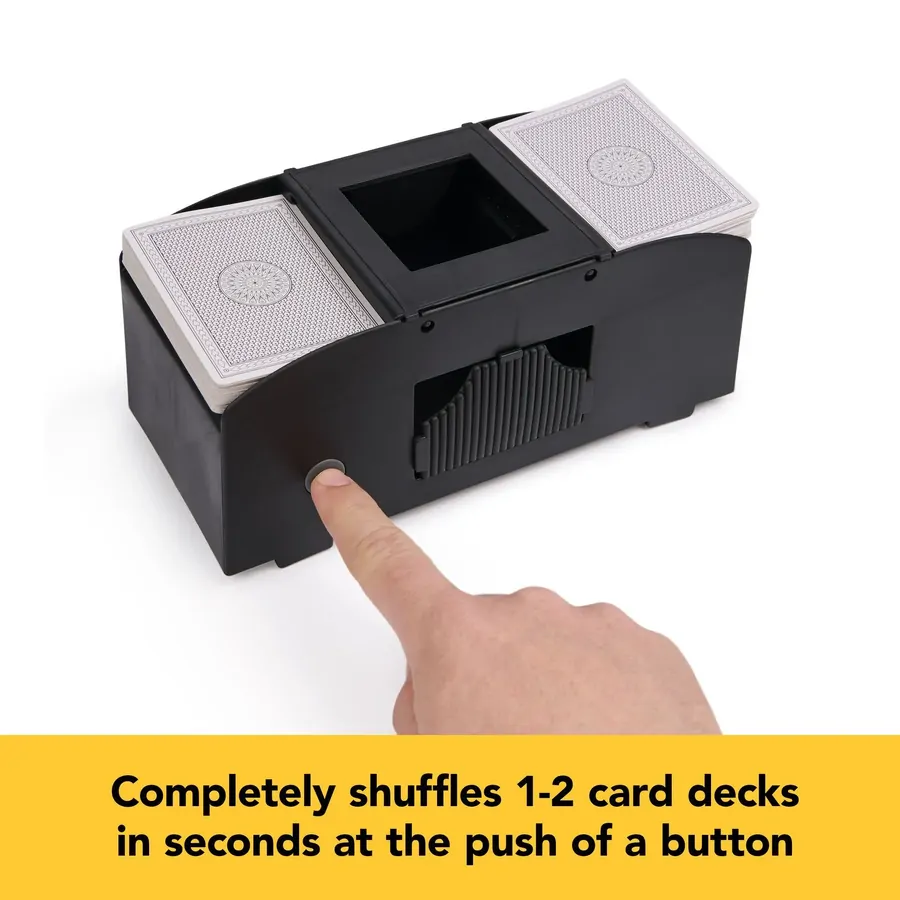 Save the time and hassle of shuffling, and get straight to playing your hand by using the Automatic Card Shuffler. With the Automatic Card Shuffler, you can completely shuffle one or two card decks in just seconds. Spend more time playing and less time shuffling!