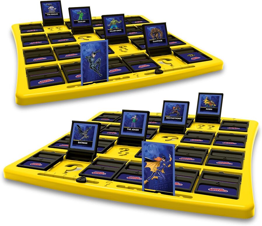 Gotham City is struck with a new mystery, and the Dark Detective needs your help to solve it! Fight crime as the Caped Crusader with this exciting new edition of Guess Who? Batman.Be the first to guess your opponent's mystery character by asking clever questions to eliminate evidence, until only the correct solution remains! Does your character wear a mask? Is your character a hero? Do they wear a cape?Are they a villain? Do they have dark hair? Are they carrying an umbrella? It's got to be the Penguin! Ideal for budding crime-fighters and comic book lovers, Guess Who is sure to please fans of DC Comics' iconic Batman.