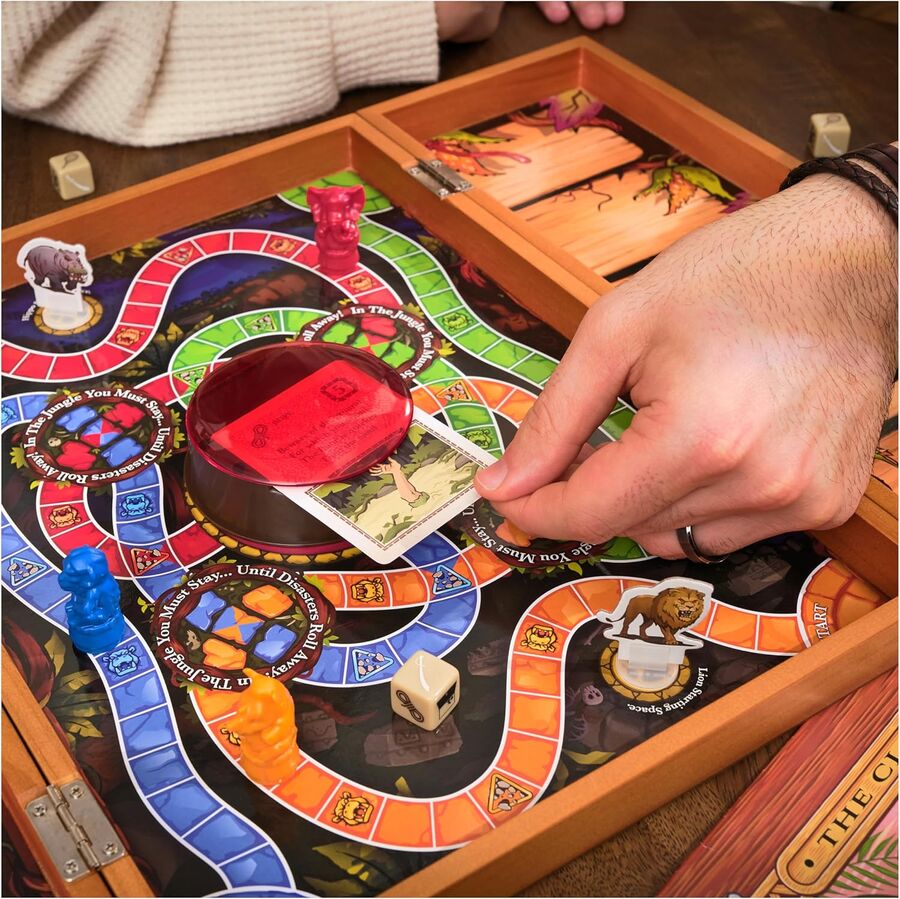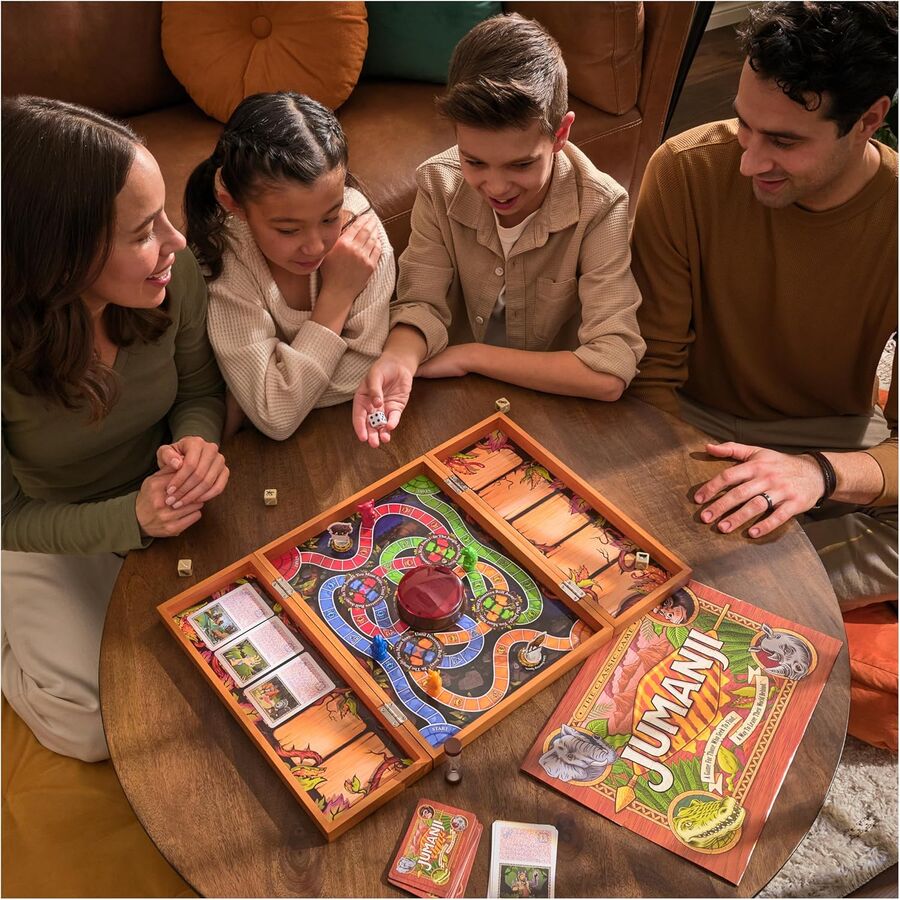 - Jungle Adventure for 2-4 Players – Roll to determine the number of spaces to move, then race across the colorful jungle-themed board to be the first to reach the center & yell “JUMANJI” to win