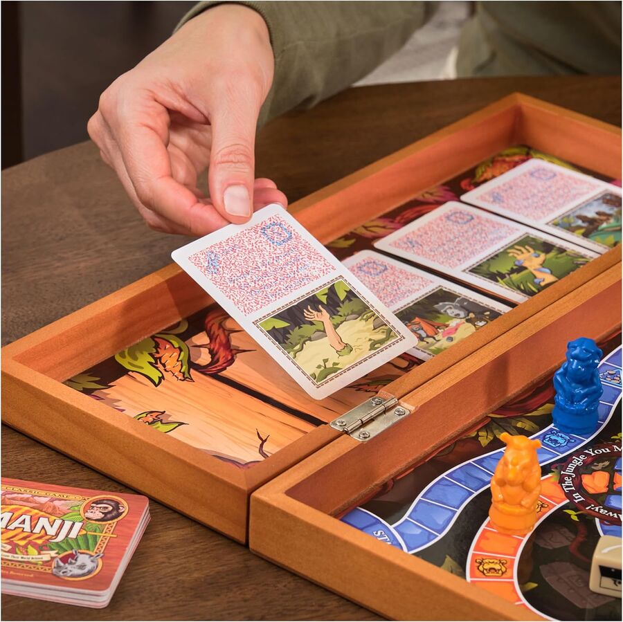 - Discover Jumanji’s Secrets – What would Jumanji be without a little trickery? Slide a card into the center decoder to magically reveal the next challenge you must overcome on your way to victory