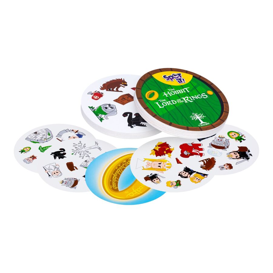 How Spot it! The Lord of the Rings differs from Spot it! is that includes a 56th card: the One Ring. Frodo, Sam, Gandalf, Smaug: find the iconic characters and objects from the world of The Hobbit and The Lord of the Rings on 56 illustrated cards! Will you be able to find The One Ring?
