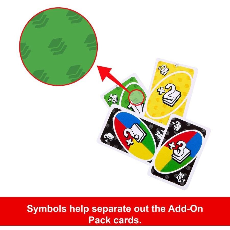 - Add UNO Add-On Packs to a classic deck of UNO cards to shake up the game; note: Classic UNO card game required!