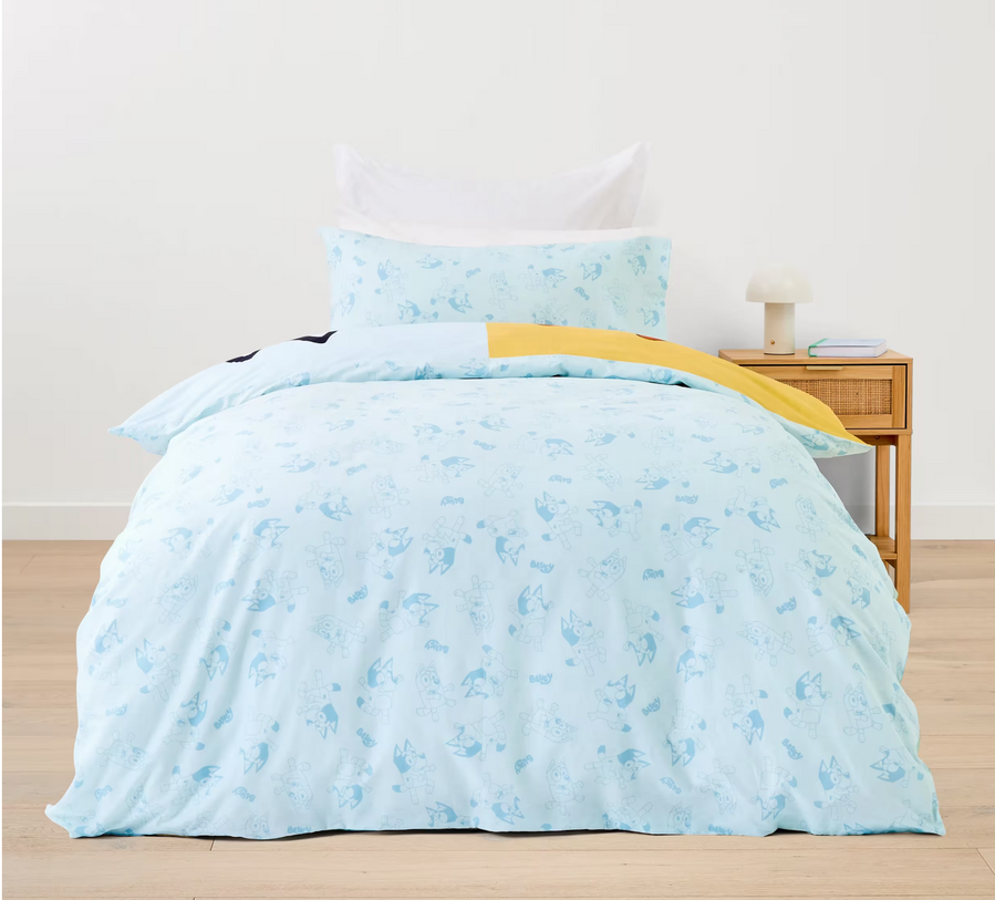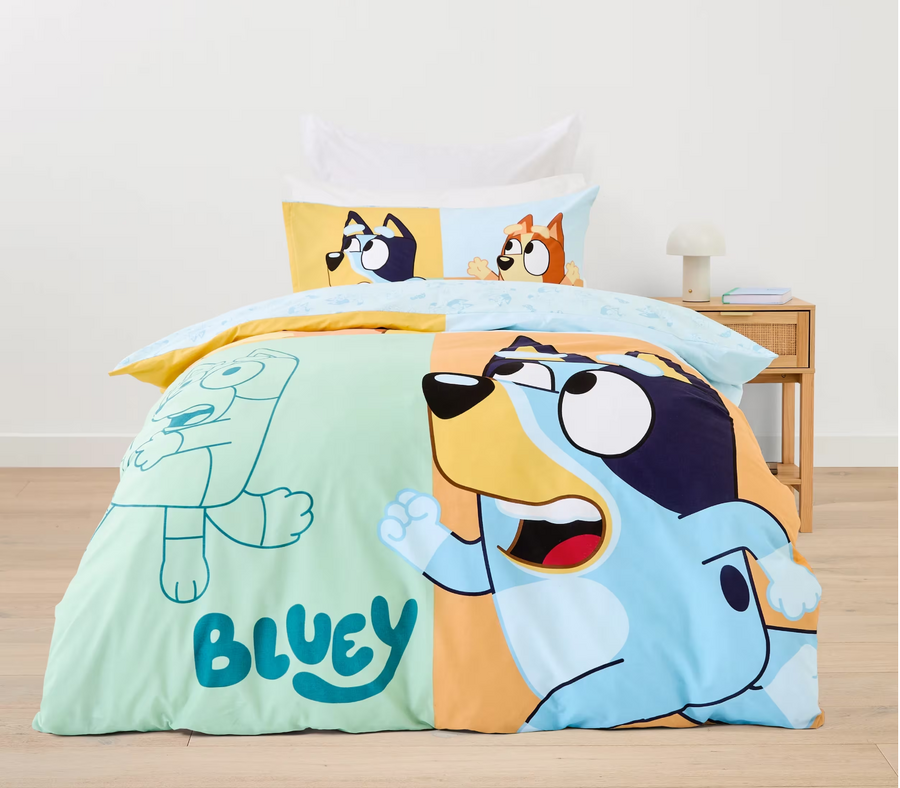 This Bluey Cotton Quilt Cover Set brings playful charm to bedtime, making your child's room cosy and filled with their favourite character.