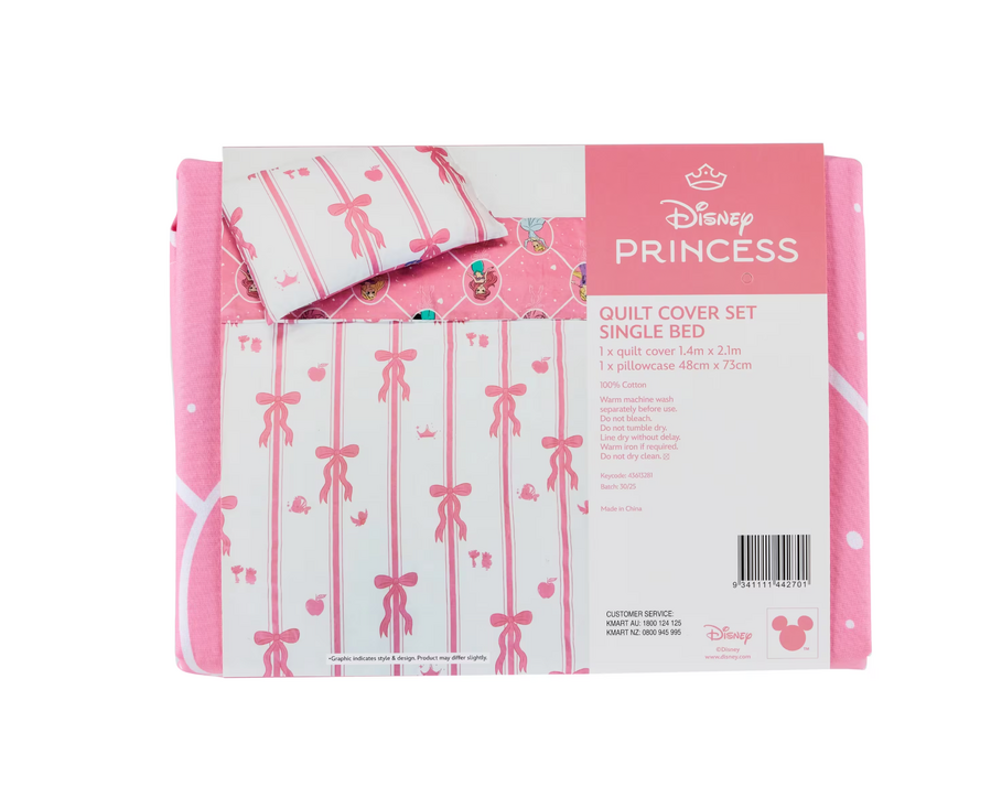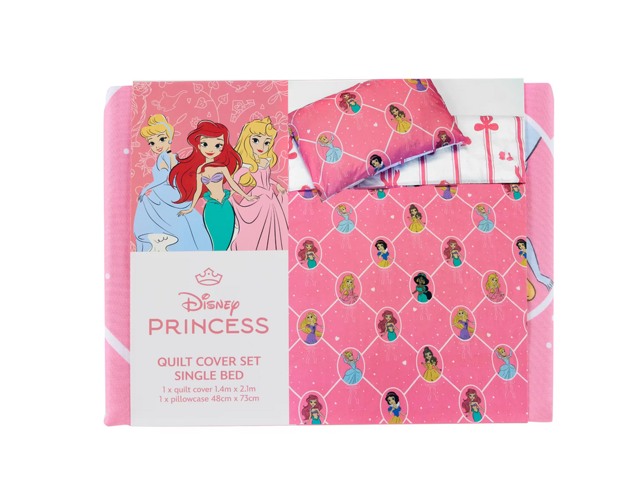 Create a dreamy nursery space with the Disney Princess Quilt Cover Set. Featuring a sweet princess-themed design, it adds charm and comfort to your child’s room, making bedtime feel magical and cosy.