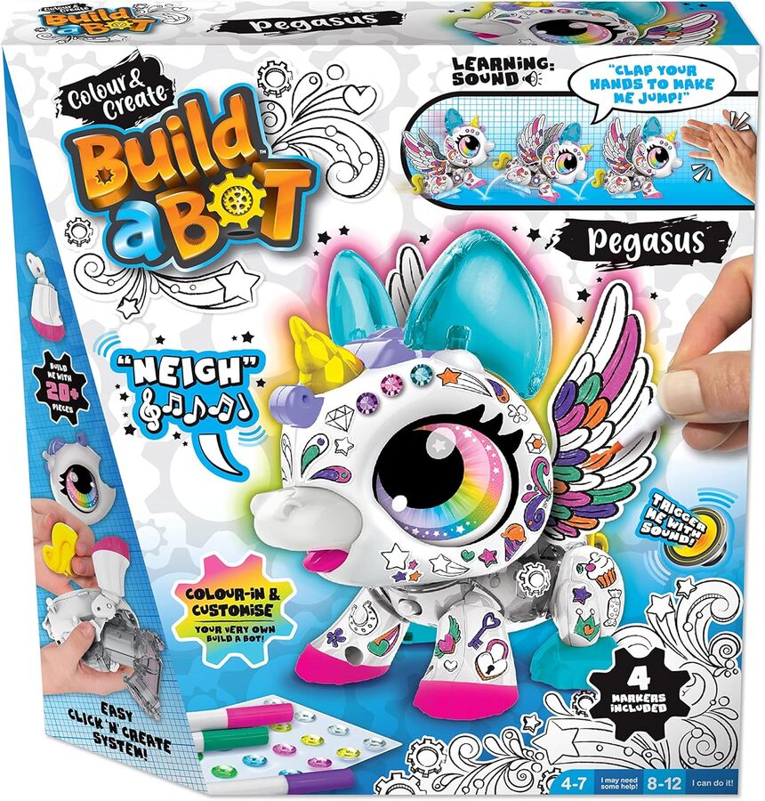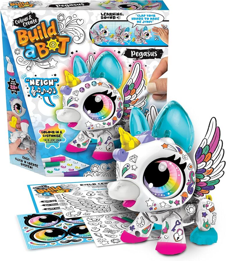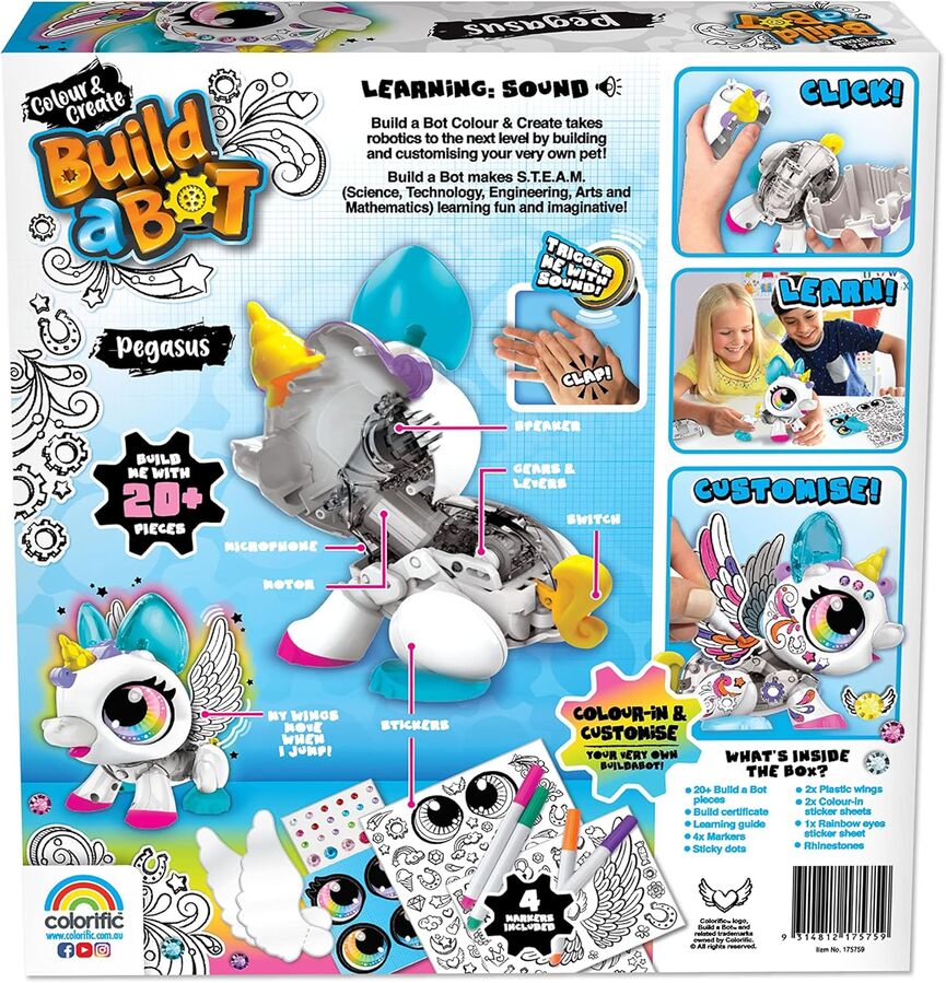 - Build, Create & Colour: Kids can build and decorate their very own robotic Pegasus! Perfect for developing fine motor skills, creativity, and hands-on STEM learning.