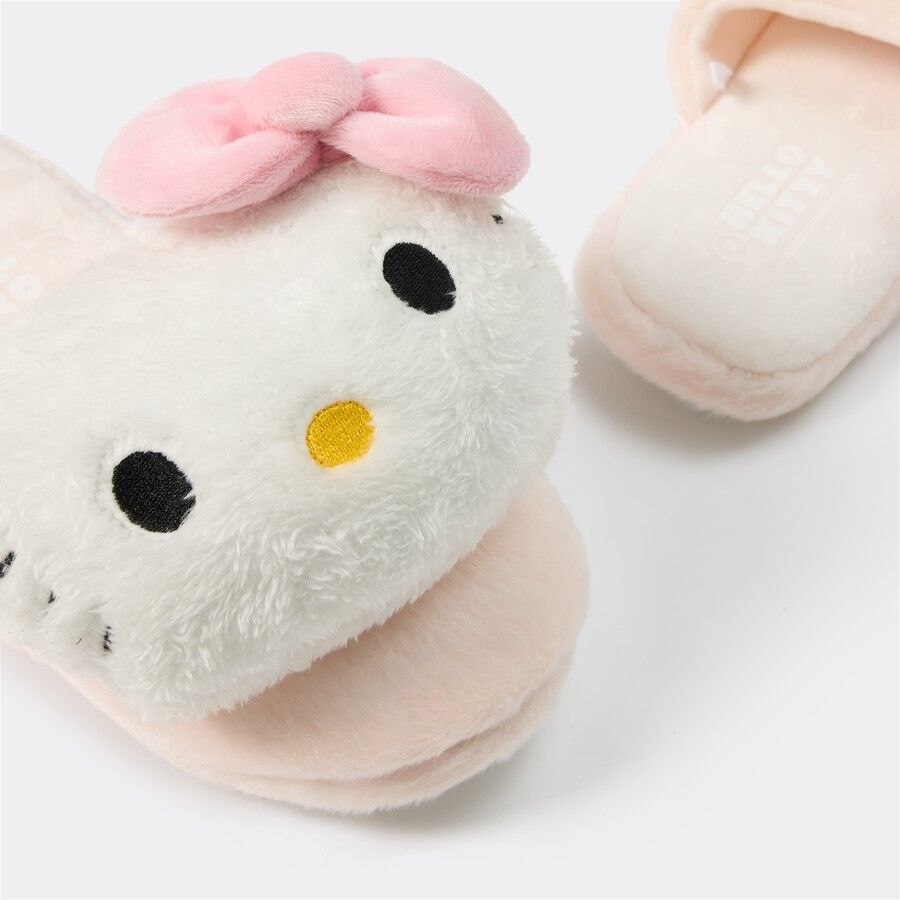 Step into playful charm with the Hello Kitty Slippers. Designed with a delightful 3D Hello Kitty face and pink bow accent on plush fabric, these indoor slip-ons add a whimsical touch to loungewear days.