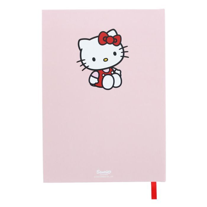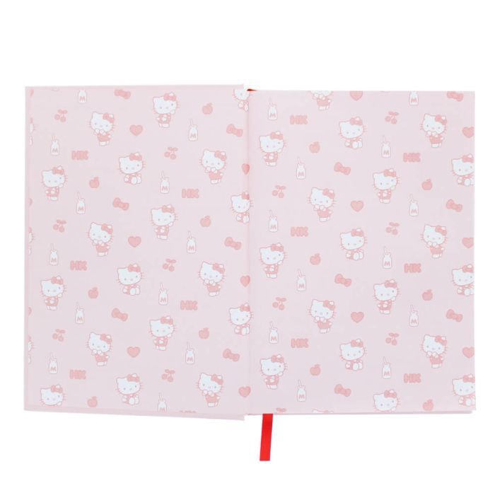 Finished with an embroidered large heart patch on the cover, this luxury Hello Kitty notebook features lined pages and a ribbon bookmark.