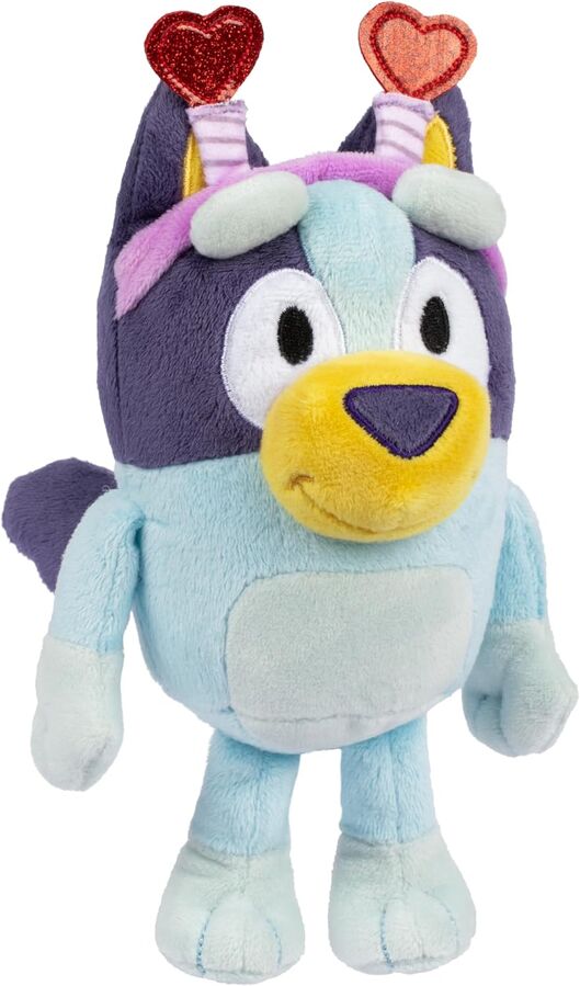 Made with deluxe fabrics featuring high-quality embroidered details, they're just the right size to cuddle and take anywhere. These super-soft Smoochy Kiss Bluey and Smoochy Kiss Bingo have on glittery heart headbands and are the perfect toys for a playtime. Fans will love to recreate some of the most memorable moments from the show and make their own Bluey adventures with these fun plush toys. Collect them both!